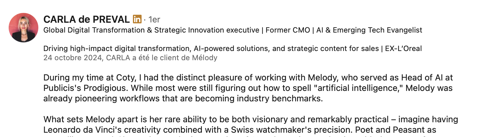 Coty, Ralph Lauren, Opéra de Paris, Mercedes, Gucci, VINCI, Estée Lauder, L’Oréal, Sephora, BNP Paribas, Renault, LVMH.
